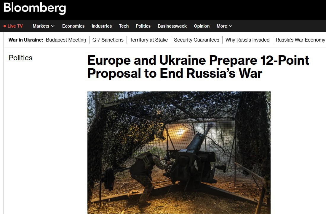 «Страны Европы и Украина работают над предложением из 12 пунктов по завершению конфликта с Россией по нынешней линии фронта», — сказано в материале. Он опубликован на сайте агентства.