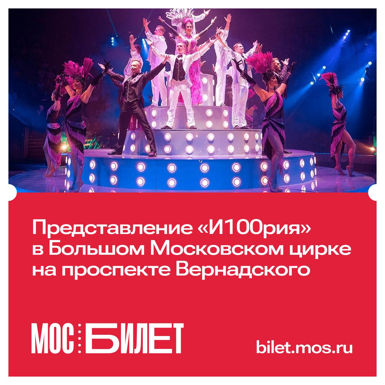 Билеты в Большой московский цирк теперь в «Мосбилете»! На проспекте Вернадского стартовало новое шоу «И100рия» — яркое путешествие по основным этапам развития российского циркового искусства.