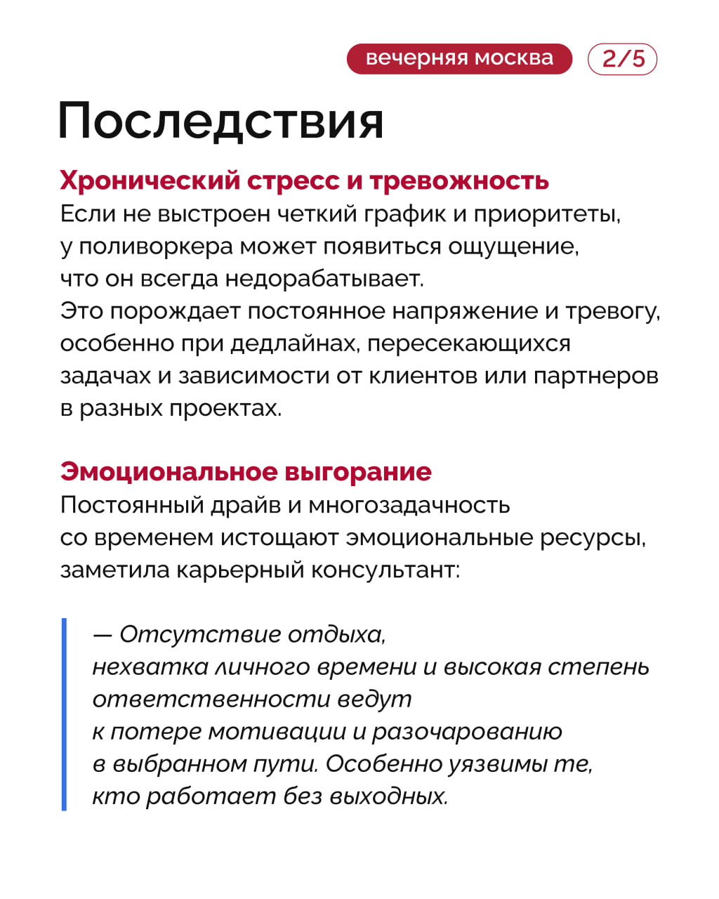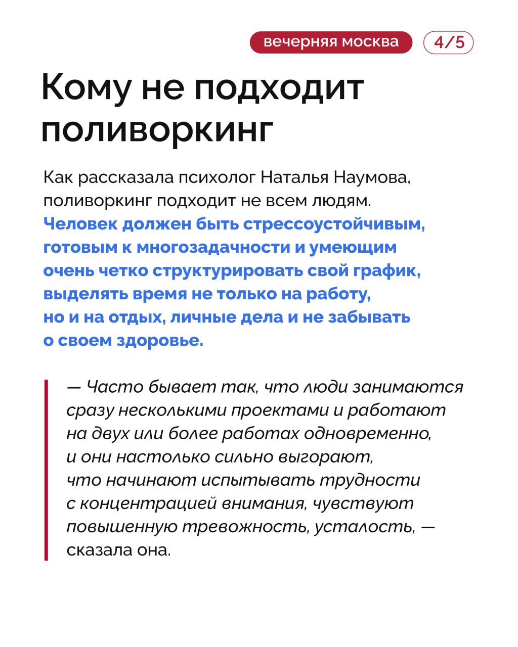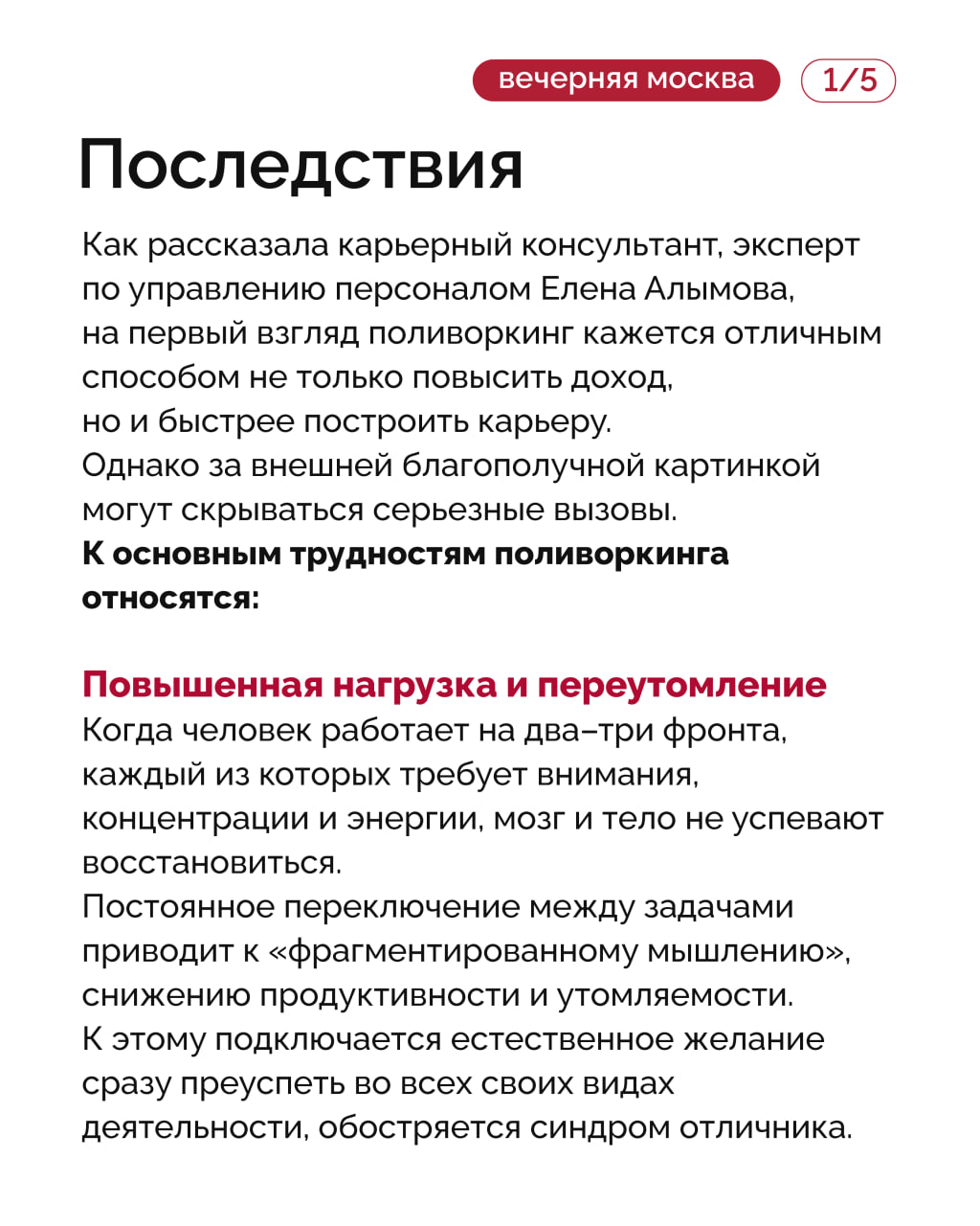 Это может быть фриланс в разных сферах, совмещение основной работы и подработок, преподавания, консультирования и многого другого. Чем опасен поливоркинг и как такая нагрузка влияет на психику, «Вечерняя Москва» обсудила с экспертами. Подробнее — в карточках!