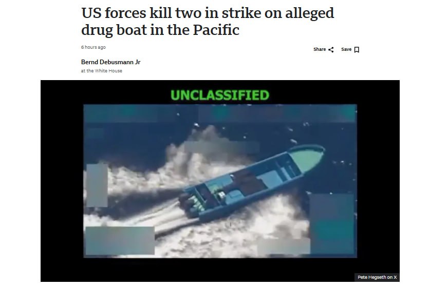Зарубежные издания не обошли стороной удар министерства войны США по судну в Тихом океане. В среду глава ведомства Хегсет заявил, что оно нанесло "летальный кинетический удар" по судну, занимавшемуся контрабандой наркотиков в восточной части Тихого океана.