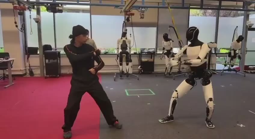 Маск собрался создать миллионную армию роботов Optimus. Ранее было опубликовано видео, где один из тестовых образцов тренируется с мастером кунг-фу.