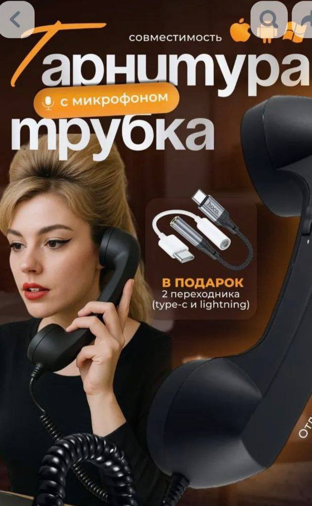 На маркетплейсах появился ретрофон — устройство в духе старых телефонных трубок, но с современным наполнением: внутри есть микрофон и динамик для подключения к ноутбуку и голосовых вызовов.