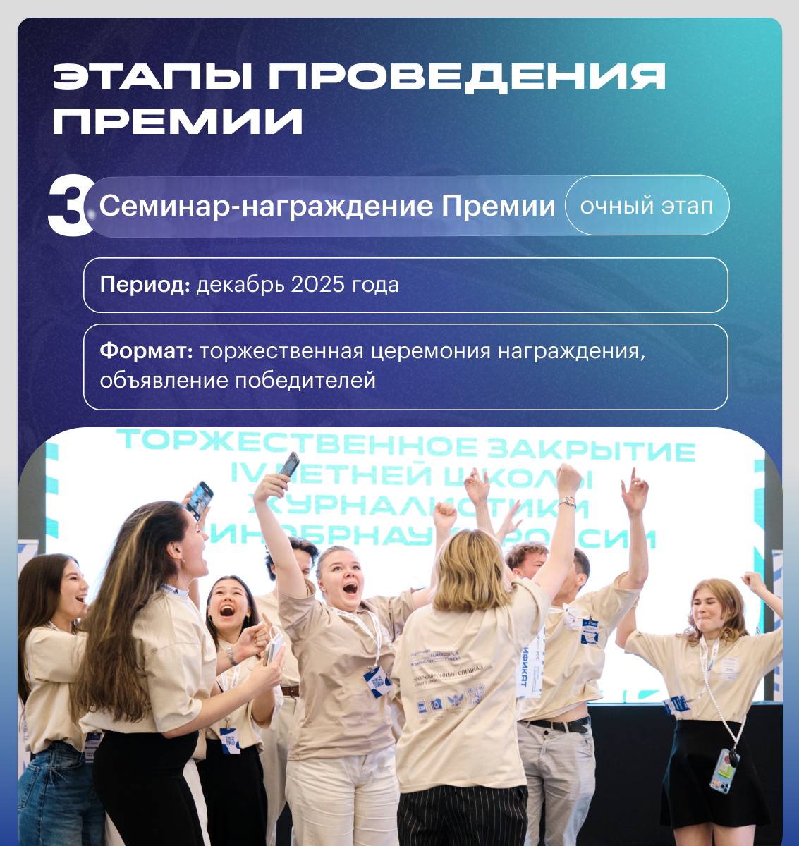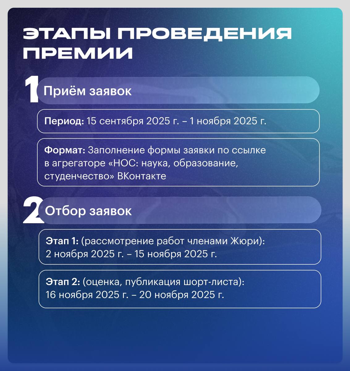 Подробнее о премии рассказали в карточках. Внимательно читаем и подаём заявки!