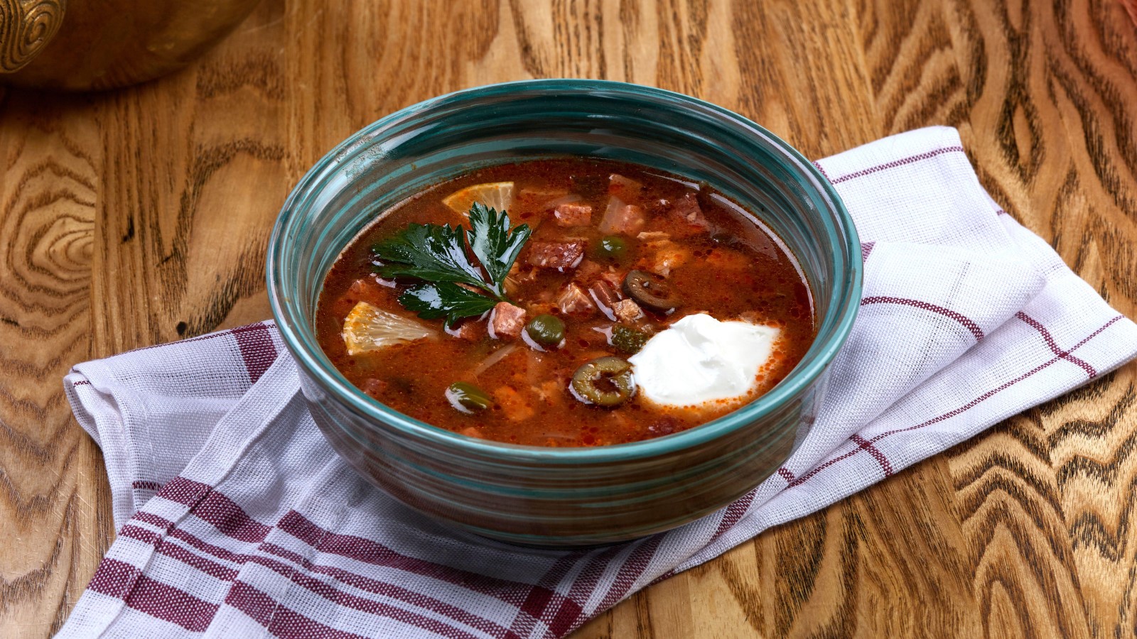 «Перед подачей на стол в солянку положить сметану, маслины, ломтики лимона, очищенного от кожицы, мелко нарезанную зелень петрушки или укропа. Но сначала нужно дать блюду немного настояться», — объяснила эксперт порталу «Городовой».