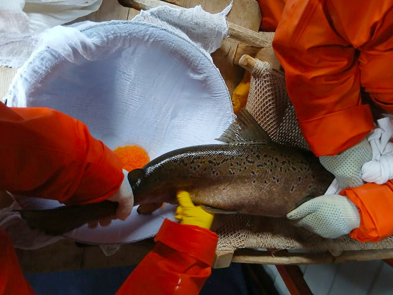 Спустя два года после начала работы, мурманские эксперты смогли сформировать полноценное маточное стадо кумжи, которое теперь официально зарегистрировано в Федеральном агентстве по рыболовству. В рамках текущей бонитировки происходит отбор здоровых особей, подходящих для размножения: рыбы без кожных дефектов и с нормальным весом.