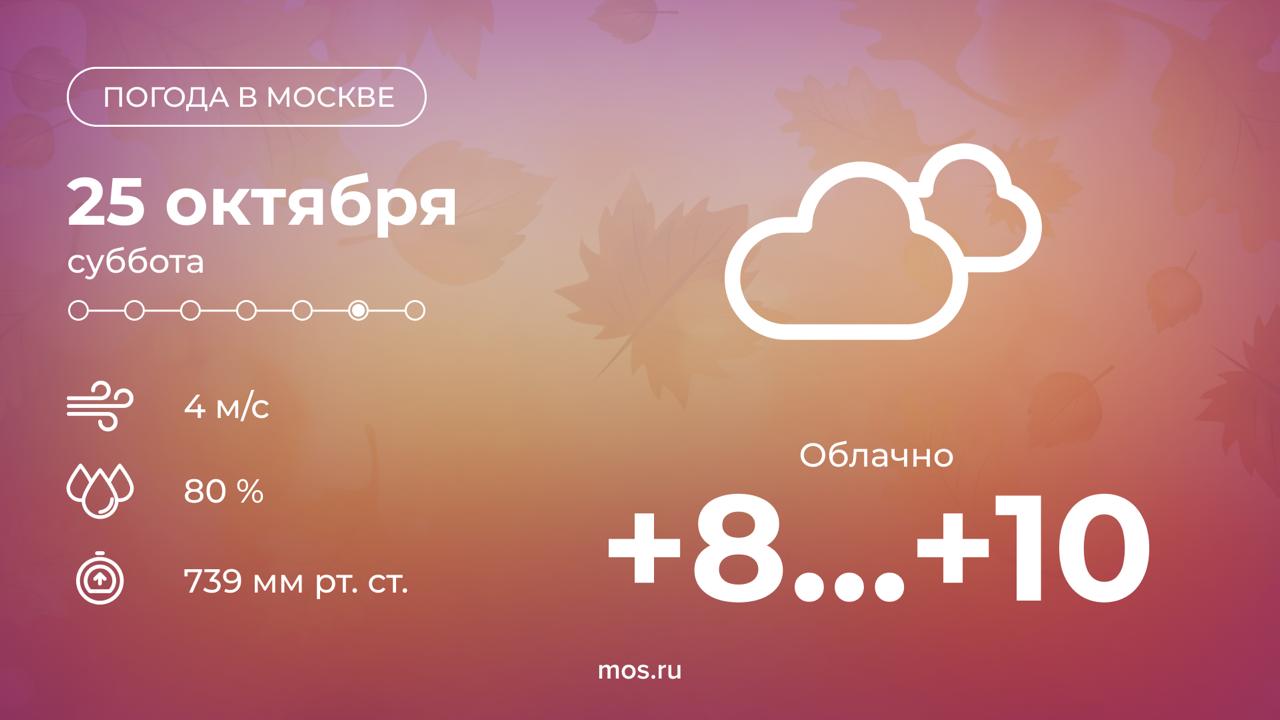 Сегодня в Москве будет облачно, вечером возможен небольшой дождь. Температура воздуха днем поднимется до +10 °С.