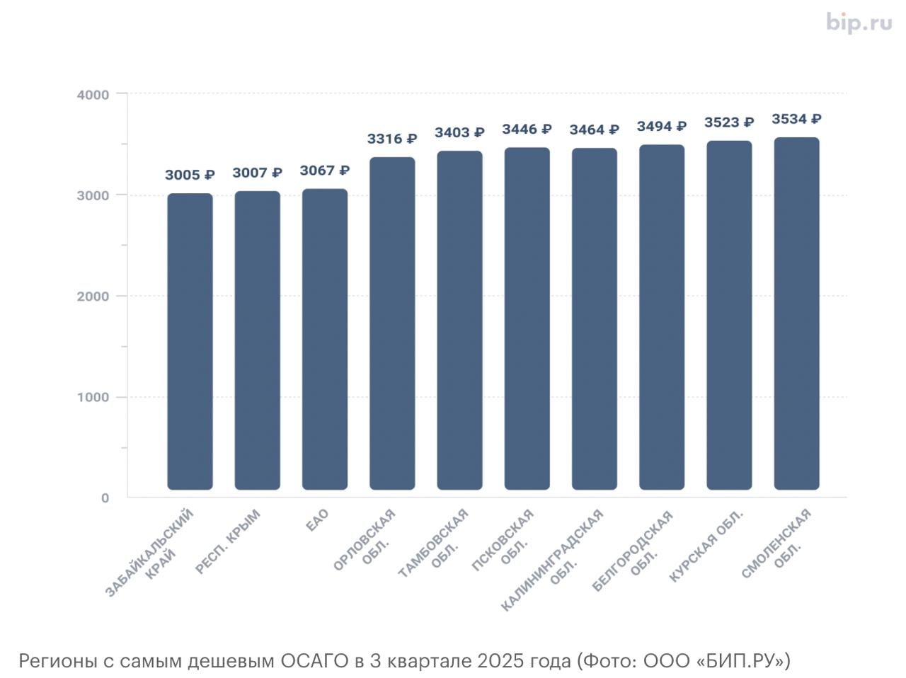 В среднем по России стоимость ОСАГО в третьем квартале 2025 года для водителей с коэффициентом бонус-малус (КБМ) 0,46 (минимальный) составила 4583 руб. Такие данные Autonews предоставили аналитики bip. ru.