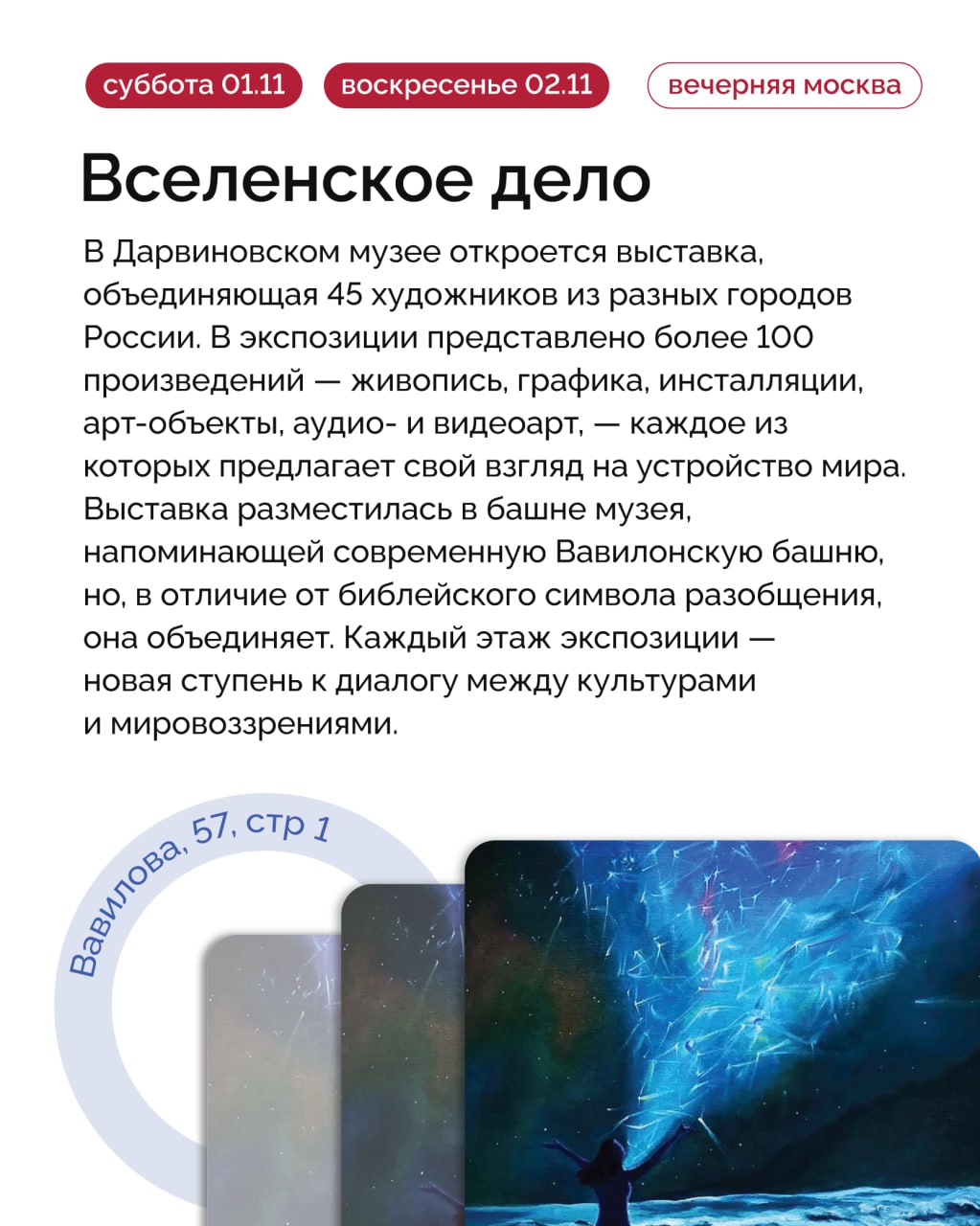 Подготовили афишу мероприятий на выходные. Листайте карточки и выбирайте занятие под настроение! #Афиша
