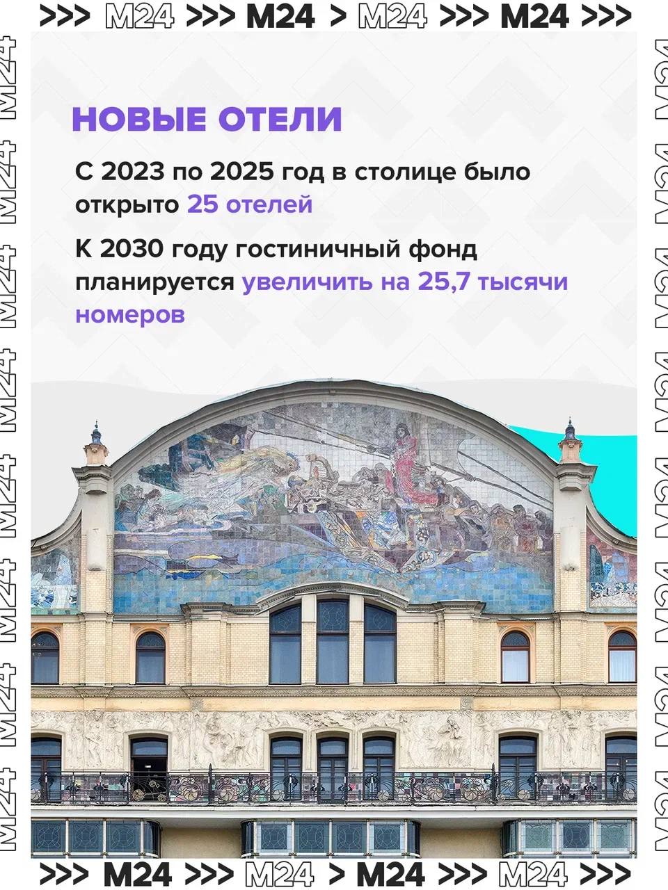 С 2023 по 2025 год в Москве открыли 25 отелей, а к 2030 году гостиничный фонд планируют увеличить на 25,7 тысячи номеров. Ещё больше деталей – в карточках.