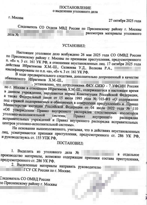 Фигурант дерзкого ограбления в «Москва-Сити» жалуется на невыносимые условия в СИЗО «Капотня». СК начал проверку о превышении должностных полномочий.