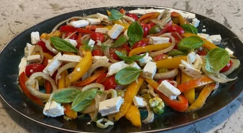 Готовый салат можно разложить по индивидуальным тарелкам или подать в салатнице. Яркие цвета и блестящие текстуры сделают это блюдо настоящим украшением стола. Приятного аппетита!