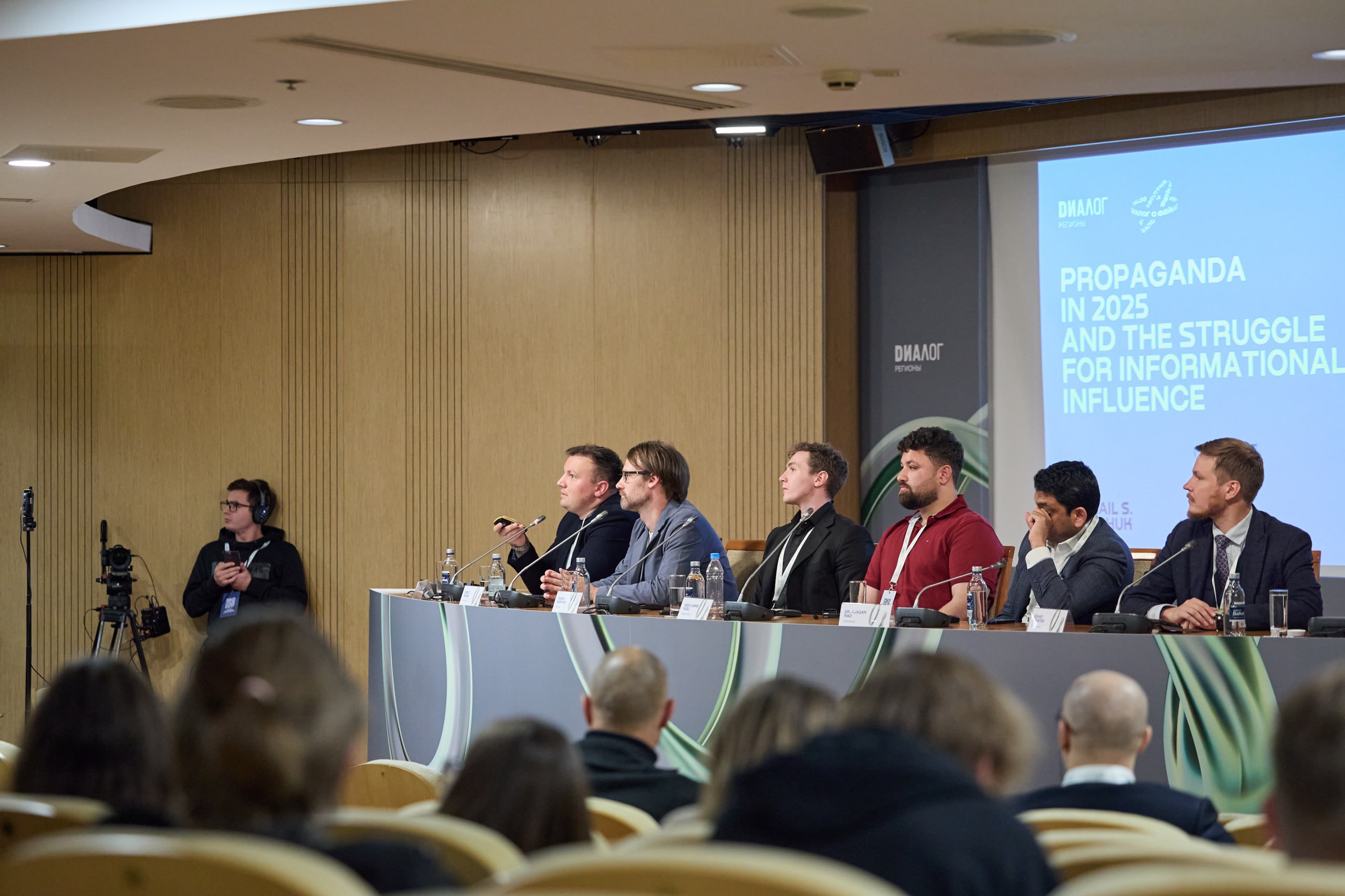 Обсуждали особенности пропаганды (ну не просто так нас же величают Kremlin war propagandists, верно?) в 2025 году — особенно в эпоху slopaganda и засилья ИИ-контента. Было достаточно занятно услышать полярные мнения экспертов из Афганистана и Пакистана, которых организаторы посадили рядом друг с другом.