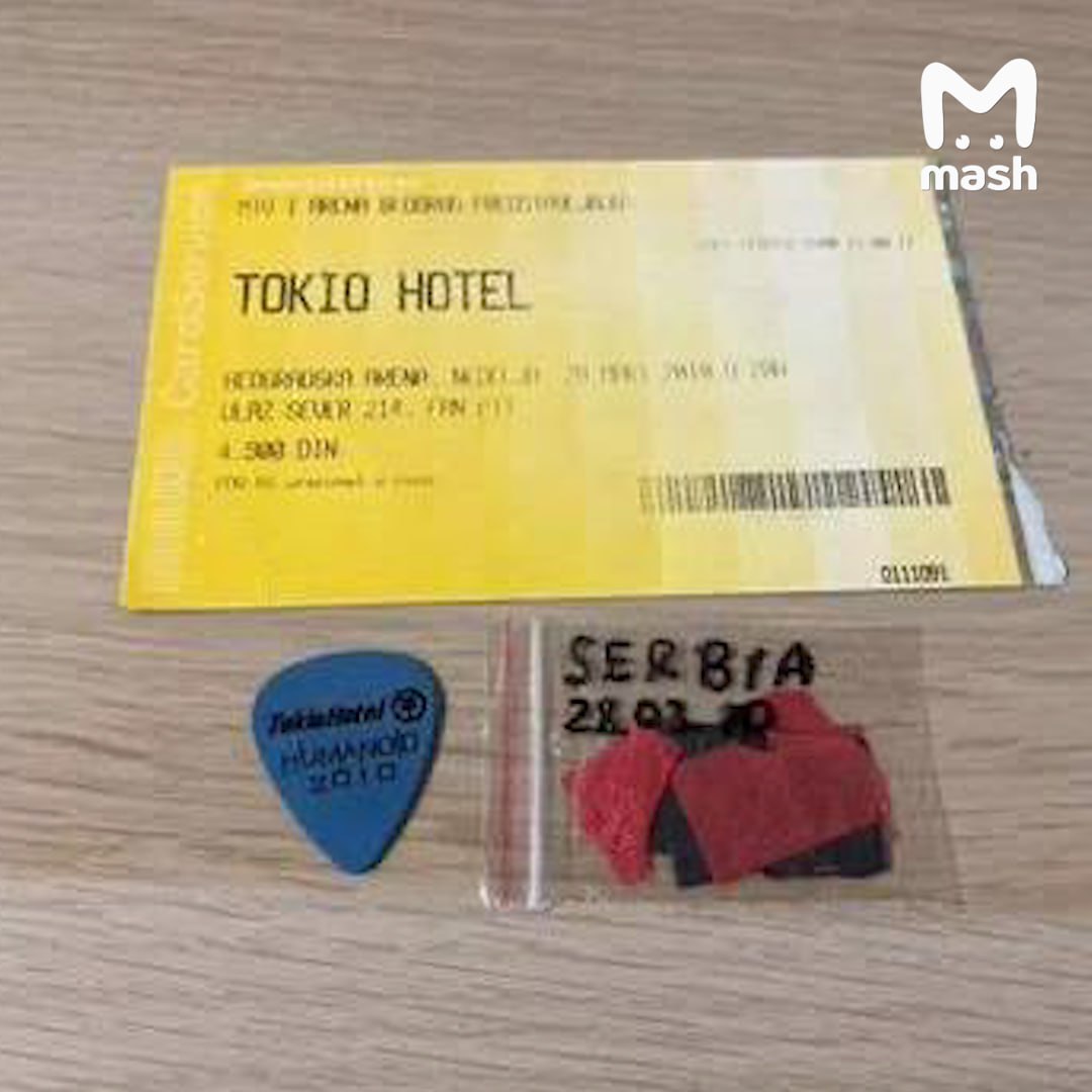 Рекордсмен когда-то принадлежал гитаристу группы Tokio Hotel Тому Каулитцу. Фанатка привезла его более 15 лет назад с концерта туpа HUМANOID. Тогда она на последние деньги полетела в Сербию, чтобы увидеть своих кумиров.