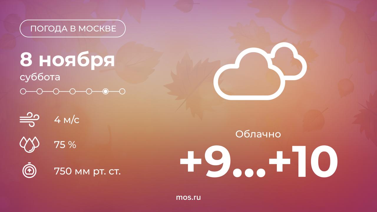 Доброе утро! Сегодня в Москве будет облачно, осадков не ожидается. Температура воздуха днем поднимется до +10 °С.