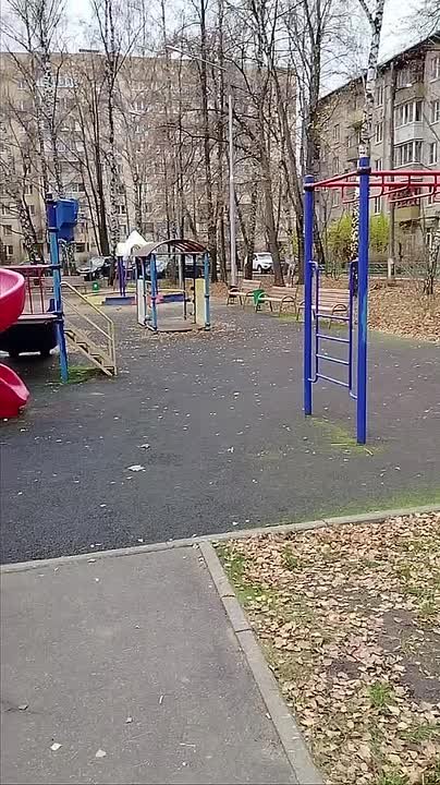 На кадрах — та самая площадка, возле которой случился взрыв. На асфальте следы крови.