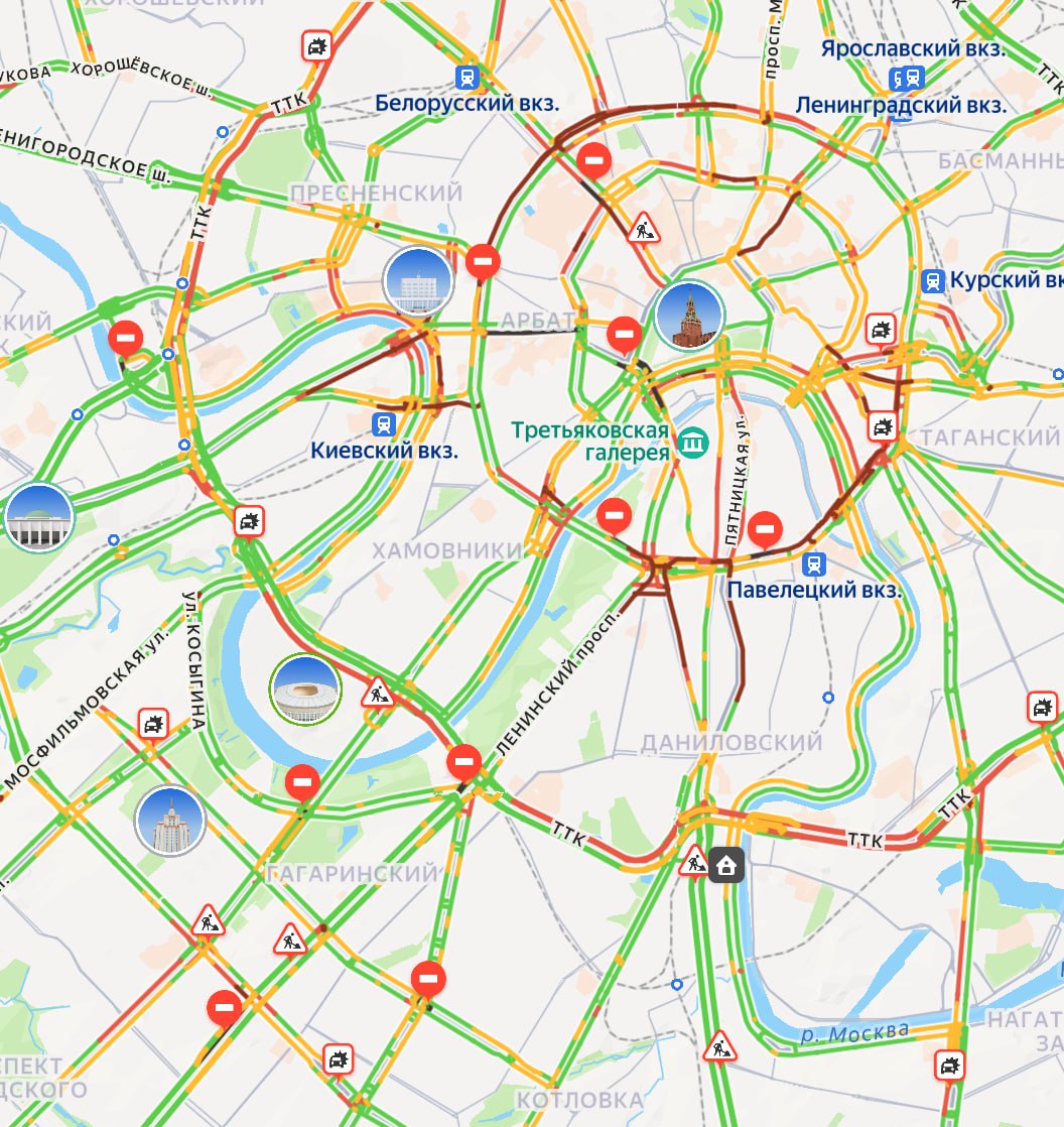 Москва, внимание! Количество перекрытий в Москве возросло (см карту).