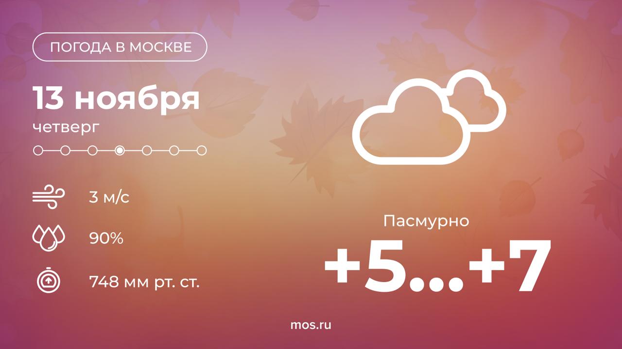 Доброе утро! Сегодня в Москве будет пасмурно. Температура воздуха днем поднимется до +7 °С.