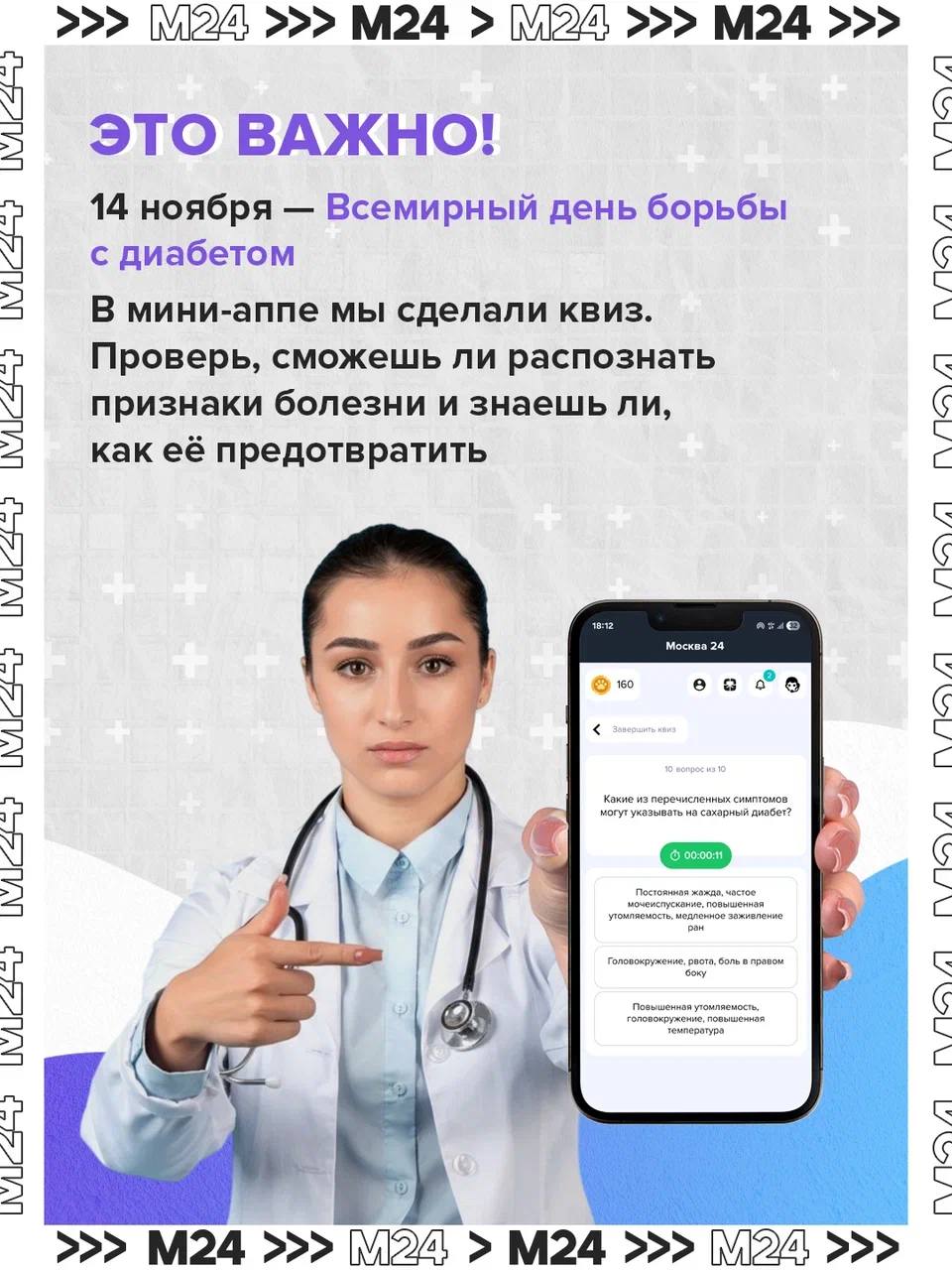 Во Всемирный день борьбы с диабетом узнайте свои риски — пройдите короткий тест по ссылке.