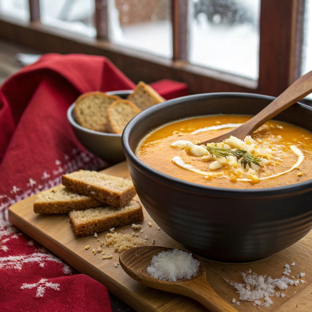 Первым делом крупно нарезаются морковь и картофель, а лук — полукольцами. В кастрюле растопить сливочное масло, обжарить лук до золотистого цвета и добавить морковь с картофелем. Имбирь натереть и также добавить в овощи. Затем залить все бульоном и варить 20 минут. После этого пюрировать смесь блендером, добавить сливки, довести до кипения, и приправить по вкусу.