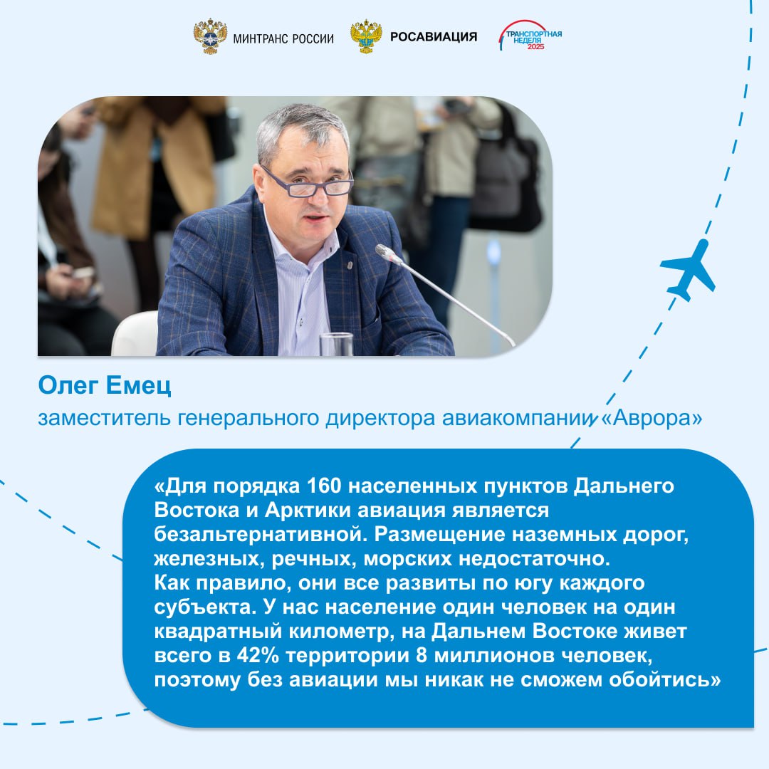 «Пришло время, когда мы должны отталкиваться от субъектов Российской Федерации и во многом от региональных авиакомпаний, потому что объем перевозок, который на сегодняшний день формируется в московском авиационном узле, в Пулково, в Сочи, — он довольно приличный. Фокус нашего внимания должен быть смещен в сторону регионов».