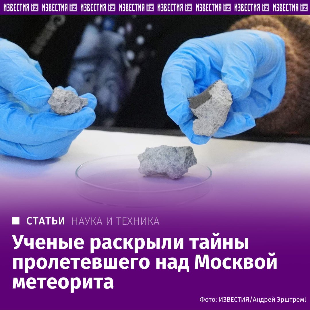Пролетевший над Россией метеорит был частью астероидной группы Аполлона. В Институте геохимии и аналитической химии имени В. И. Вернадского (ГЕОХИ) РАН на Воробьевых горах журналистам впервые продемонстрировали образцы метеорита, который стал причиной ярких вспышек в небе над Москвой 27 октября. Видео с ним разошлись по соцсетям. Анализ траектории болида показал, что он был частью астероидной группы Аполлона, которая часто служит источником земных метеоритов, так как это скопление периодически сближается с нашей планетой.