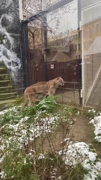 Утро у пумы Габриэля началось не с завтрака, а с «битвы взглядов» с домашним яком, проживающим рядом