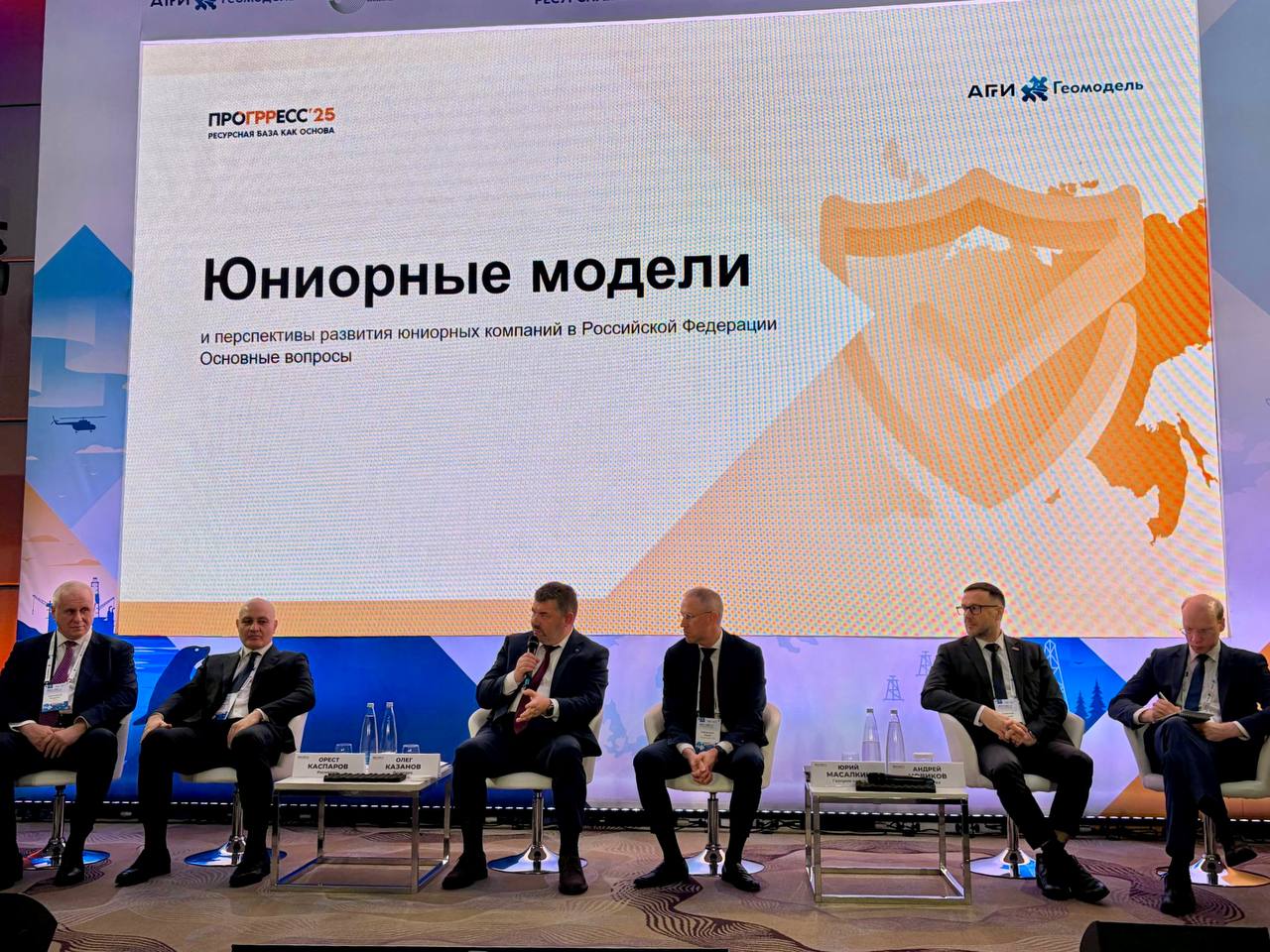 В панельной дискуссии, посвящённой развитию юниорных проектов в России, приняли участие руководитель Роснедр Олег Казанов, заместитель руководителя агентства Орест Каспаров и заместитель директора подведомственной организации Роснедр — Росгеолэкспертизы Денис Никишин.