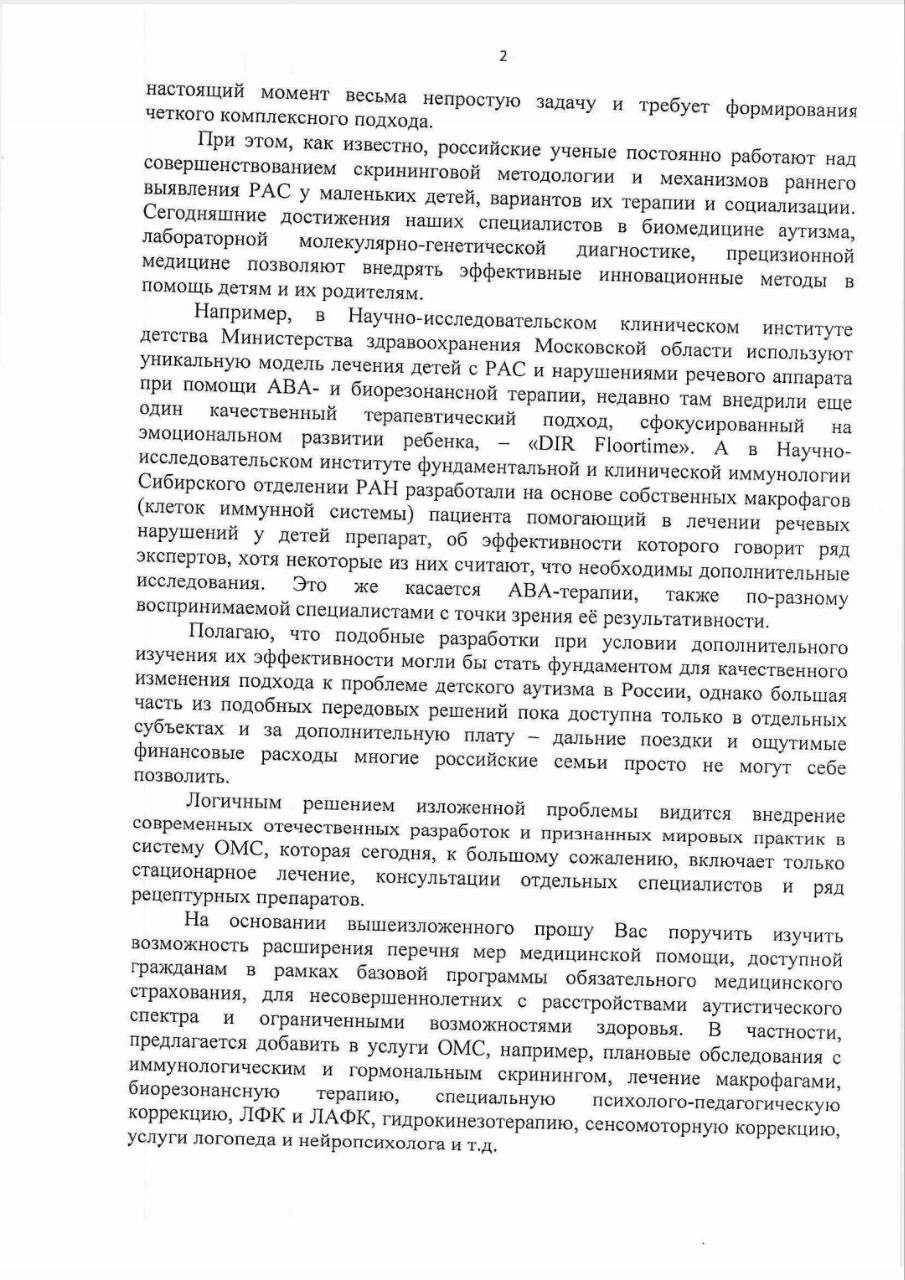 Депутат Ярослав Нилов направил соответствующее письмо главе Минздрава. Он рассказал о разработанных нашими учеными уникальных методах лечения и препаратах, которые могли бы стать фундаментом для качественного изменения подхода к решению проблемы детского аутизма. Но такие передовые решения доступны только в некоторых регионах за большие деньги.