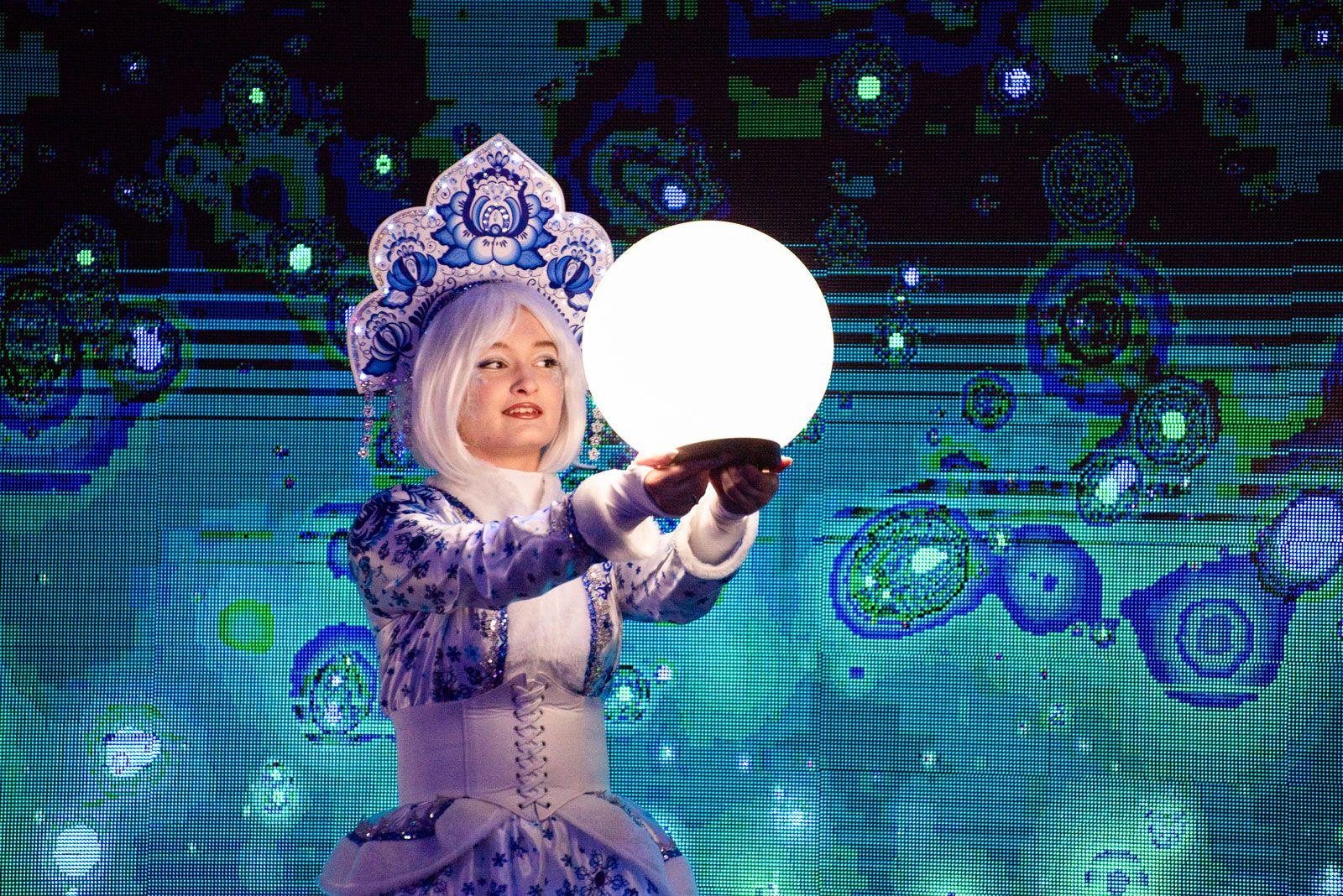 Актеры в ярких бело-голубых костюмах будут водить хороводы и показывать акробатические номера.