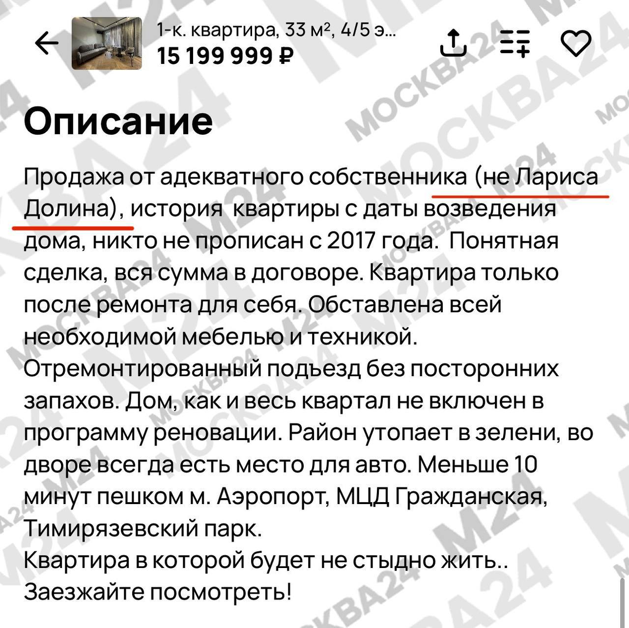 И это не всё: владельцы недвижки стали указывать в объявлениях о продаже, что «собственник не Лариса Долина».