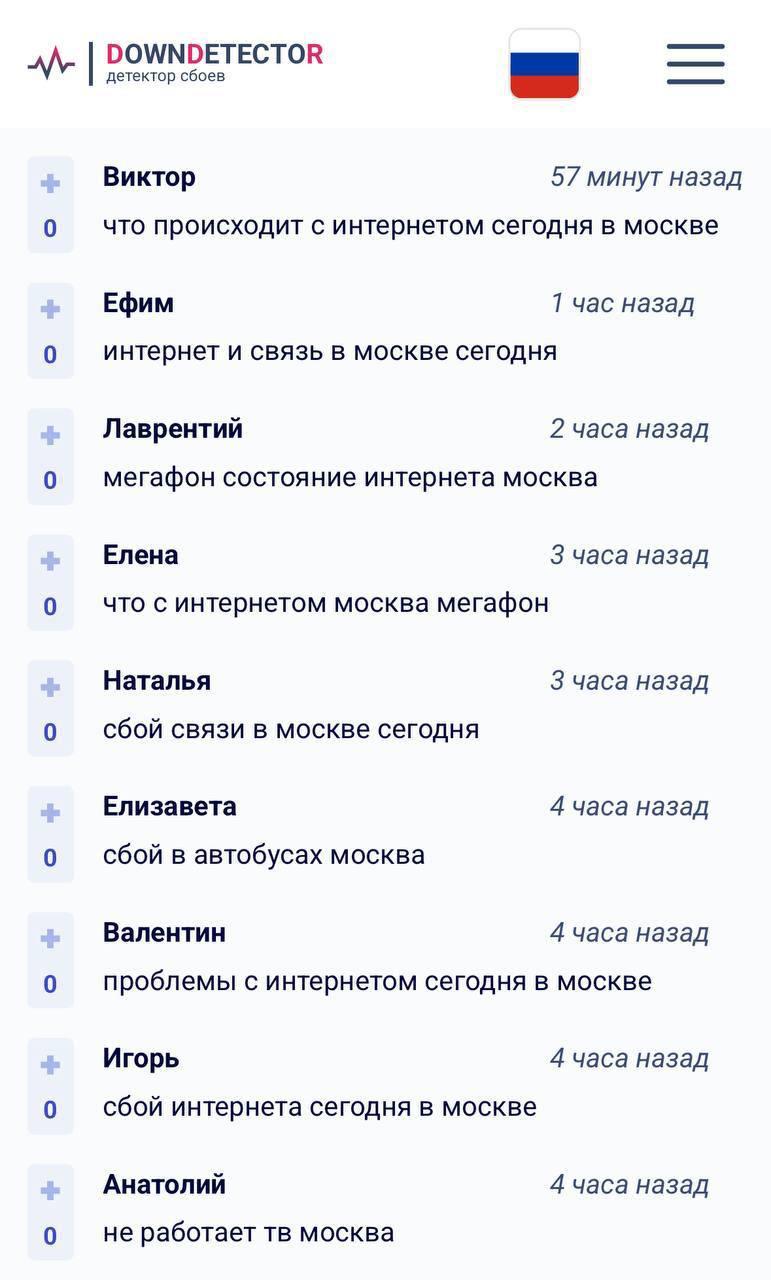 Жители столицы говорят, что не работает ни мобильный интернет, ни Wi-Fi. Проблемы фиксируются у абонентов операторов МТС, «МегаФон», Т2, Yota и «Билайн».
