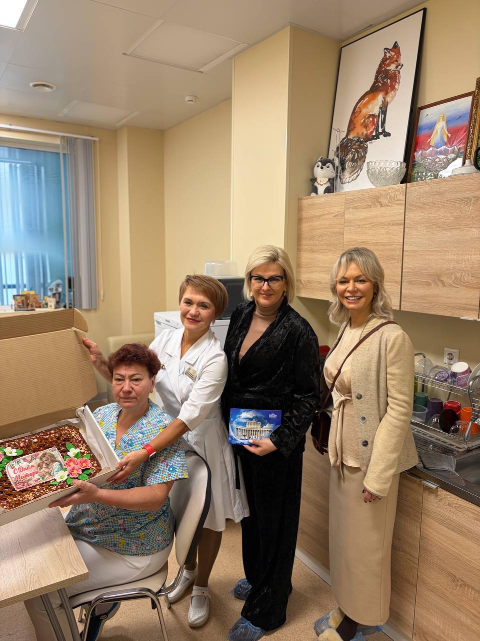 Директор Центрального академического театра Российской Армии, член комиссии МГД по культуре и массовым коммуникациям Милена Авимская (фракция партии «Единая Россия») вместе со столичной командой Женского движения «Единой России» передала гуманитарную помощь, а также сладкие пироги для бойцов СВО, проходящих лечение в госпитале имени Бурденко.