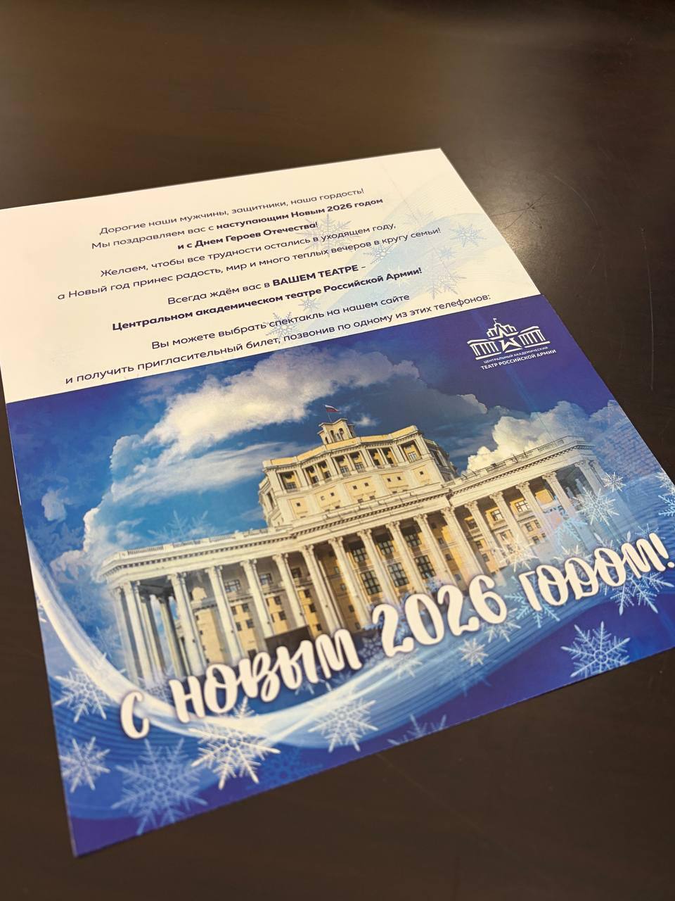 * В ходе встречи с начальником госпиталя генерал-майором медицинской службы Давыдовым Денисом Владимировичем обсудили возможность организации выездных спектаклей для пациентов госпиталя. Нам провели экскурсию, на которой мы посмотрели сцену и наметили план на декабрь.* А от нашего театра мы передали самый теплый привет и поздравили защитников с наступающим Новым годом. Мы подарили ребятам приглашения на тот спектакль, который они сами выберут – чтобы после выздоровления они смогли окунуться в мир искусства.*От всего сердца желаю всем, кто проходит лечение, скорейшего восстановления! А тем, кто сейчас на передовой, – победы и скорейшего возвращения домой, к родным и близким!