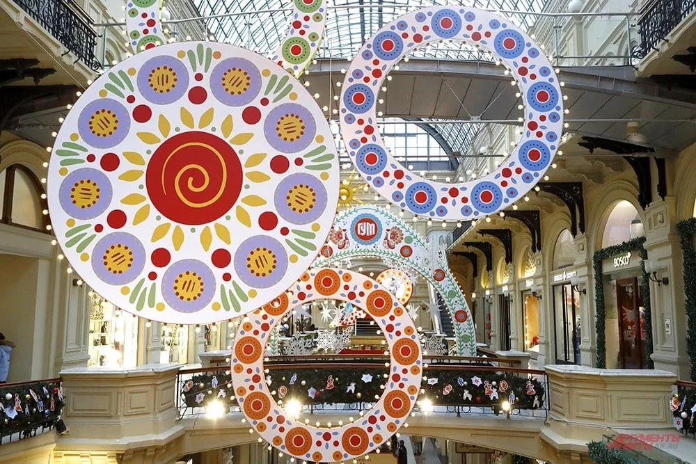 Тема этого праздника в главном универмаге Москвы — дымковская игрушка. Поход туда с ребенком — чудесная возможность познакомить его с родной культурой.