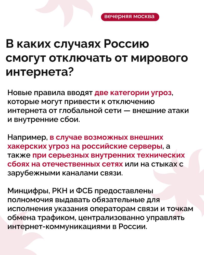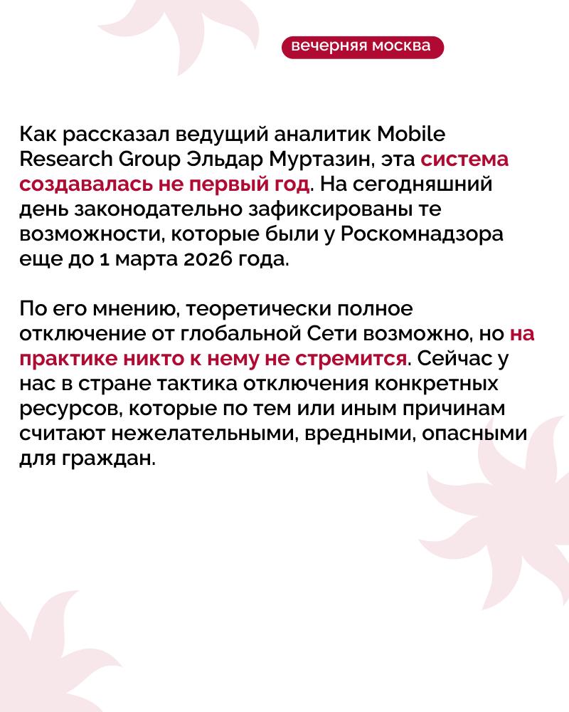 С 1 марта 2026 года Роскомнадзор (РКН) получит официальные полномочия на отключение России от мирового интернета в целях безопасности. Правительство РФ утвердило новые правила, которые позволяют Минцифры, Роскомнадзору и ФСБ контролировать интернет-инфраструктуру страны в случае внешних угроз.