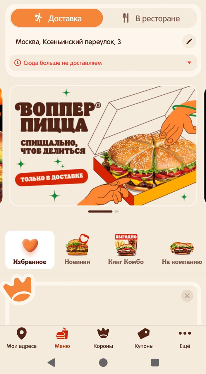 Друзья, мы приняли важное решение: дом Ларисы Долиной в Москве временно исключён из зоны доставки. Пока деньги покупательнице не будут полностью возвращены, наши сочные Вопперы и хрустящая картошечка туда не поедут.