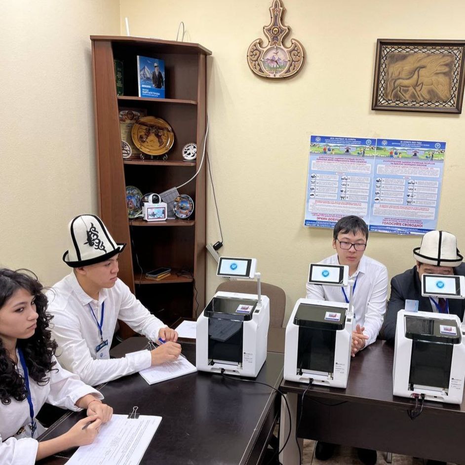 Специальное оборудование, используемое ЦИК Кыргызской Республики, работает эффективно. На обработку одного избирателя – проверку его документов, биометрии, распечатку бюллетеня – уходит не более пары минут.