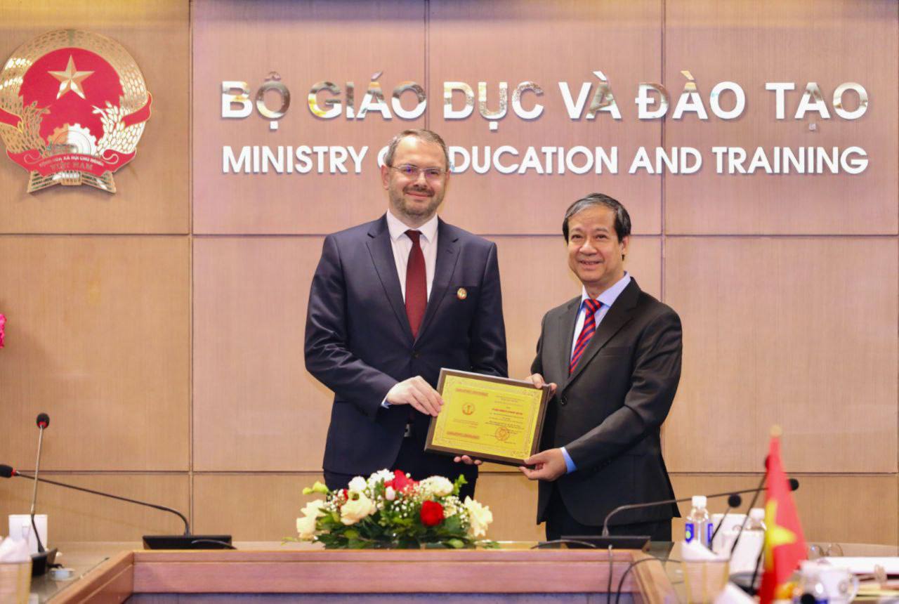 В завершение встречи Константин Могилевский был награжден медалью Министерства образования и подготовки кадров Вьетнама «За вклад в образование».