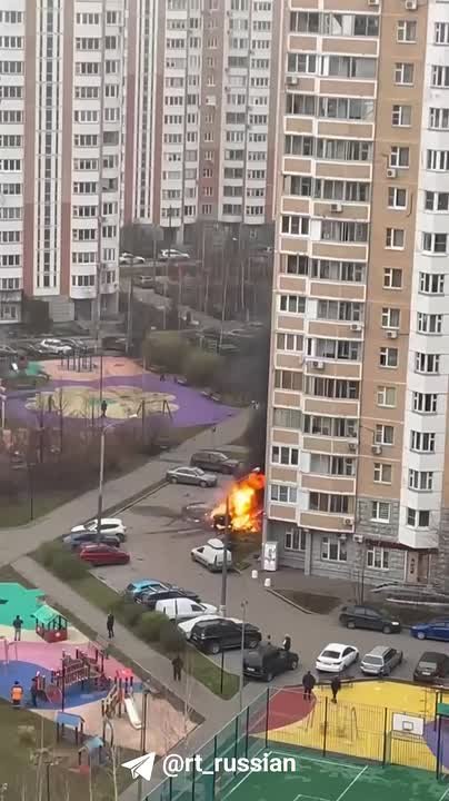 Машина горит в жилом дворе на Радужной улице в Новой Москве. Перед этим очевидцы слышали взрыв, пишут в сети.