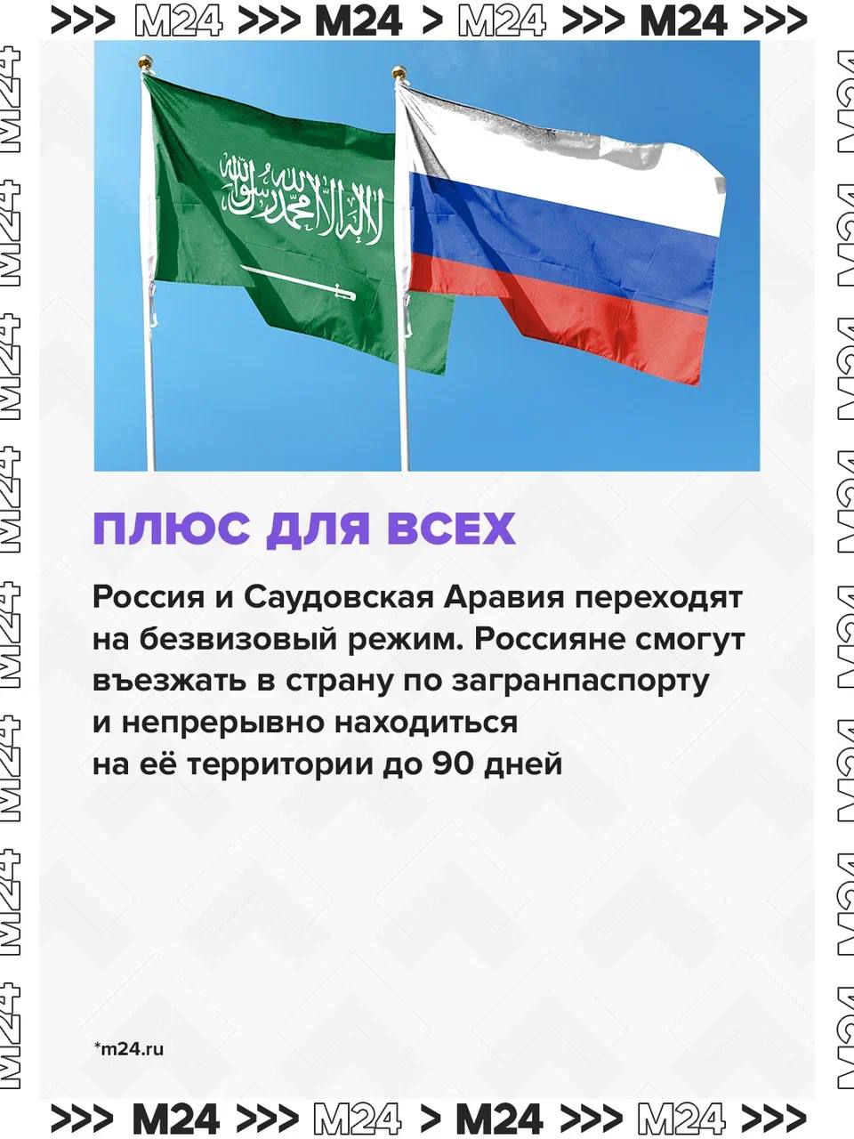 Станем ближе: между Россией и Саудовской Аравией с нового года заработает безвизовый режим. Наши граждане смогут наслаждаться наследием ЮНЕСКО в песках, а вот арабские партнёры оценить прелести русской зимы.