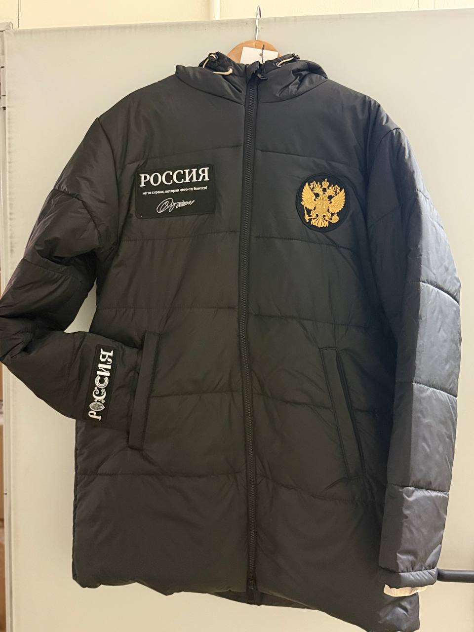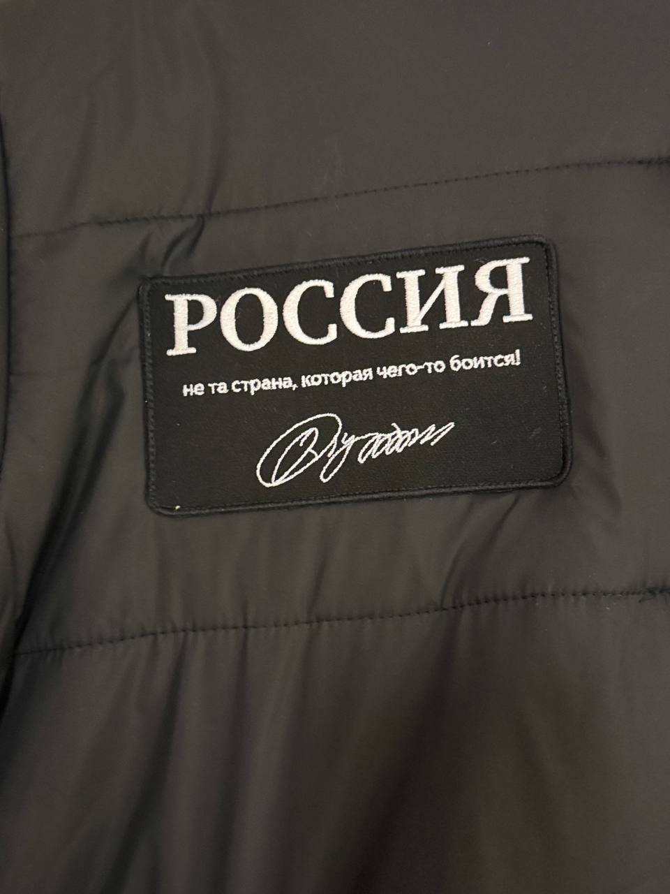 Такая надпись на куртке Кирилла Дмитриева, который показывает Стиву Уиткоффу и Джареду Кушнеру Москву.