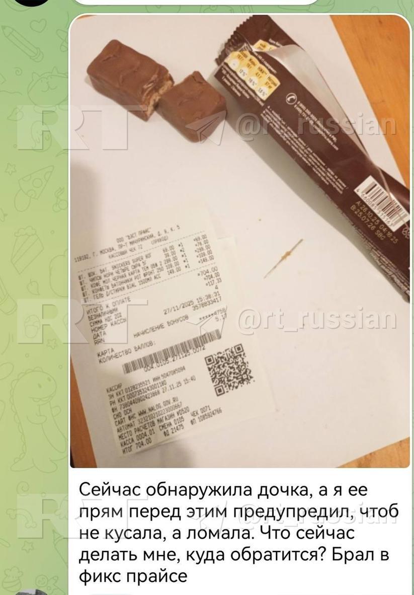 Как заявила RT жительница Калуги Евгения, после случившегося к ним приехал представитель компании Mars — хотел забрать тот самый батончик. Отдать его не разрешили следователи.