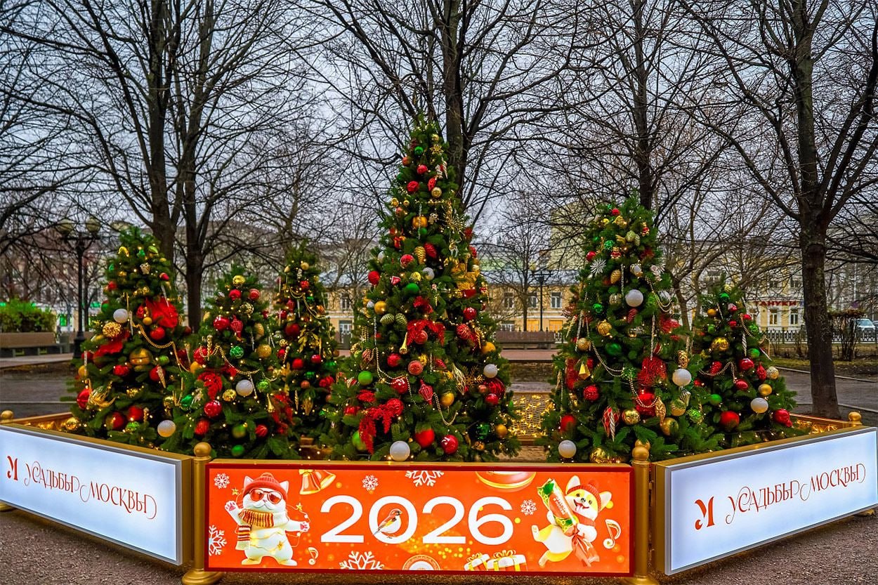 На Цветном бульваре установили тематические новогодние елки. Каждая из 27 красавиц посвящена одному из городских проектов и украшена брендированными шарами.