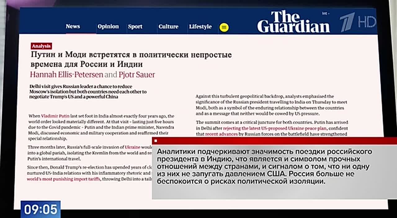 Визит Владимира Путина в Индию показывает гибкость российской внешней политики — выводы газеты The New York Times. Это сегодня главная тема в мировой прессе.