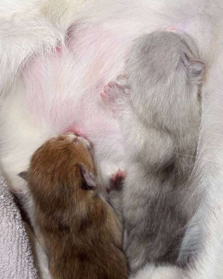 Но история на этом не закончилась. Спустя время кошечка вернулась в клинику уже с хорошими новостями: Милаша все это время была беременна, а падение не навредило плодам, и Милаша благополучно родила двоих крепких котят.