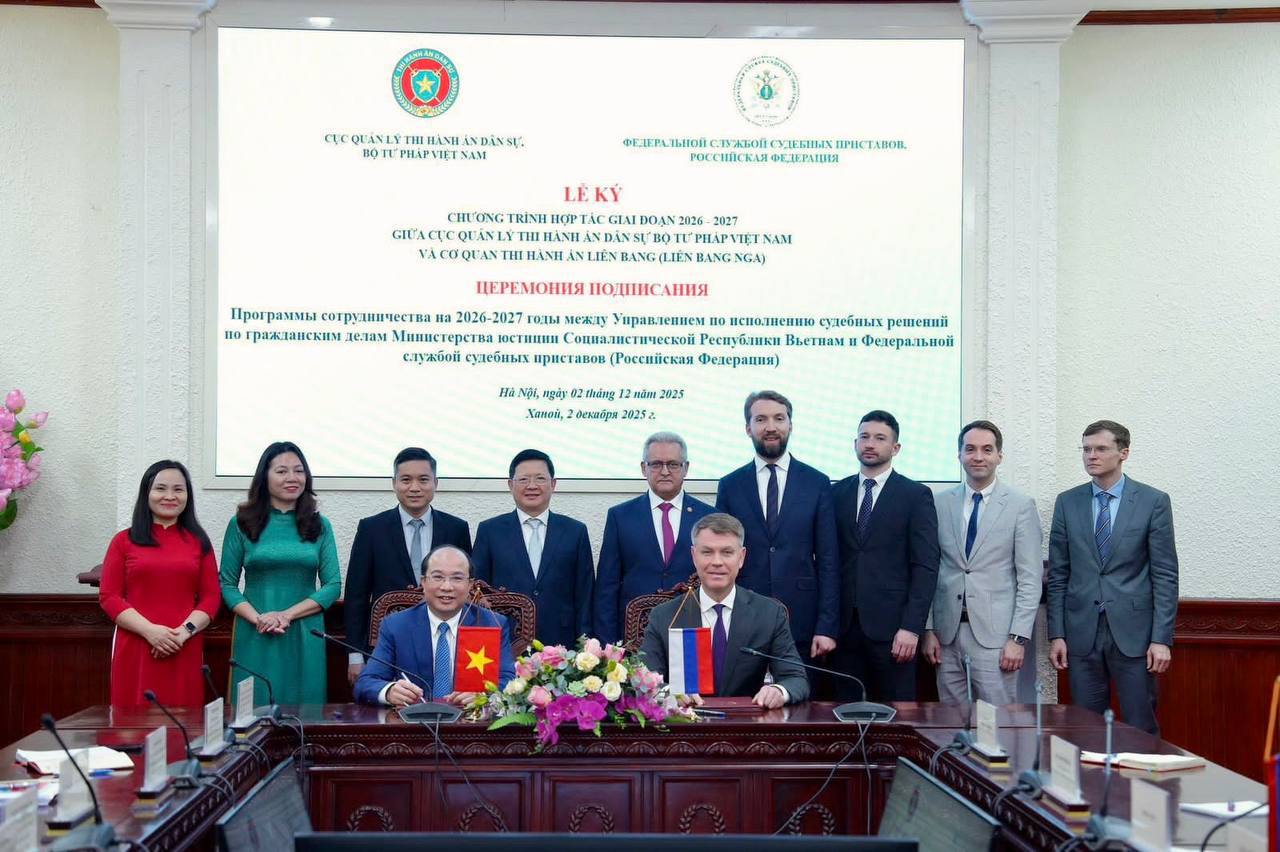 Делегация ФССП России во главе с Дмитрием Аристовым с рабочим визитом посетила Ханой. В ходе поездки состоялась встреча с заместителем Министра юстиции Вьетнама Май Луонг Хой, а так же директором Управления по исполнению судебных решений по гражданским делам Министерства юстиции Вьетнама Нгуен Тханг Лой.