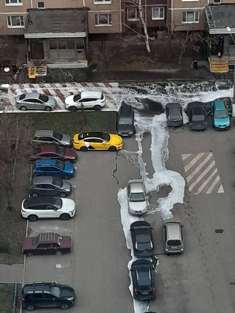 За премию «самый чистый двор» решили побороться коммунальщики района Марьино — на улице Маршала Голованова устроили пенную вечеринку не только для дороги, но и нескольких машин.