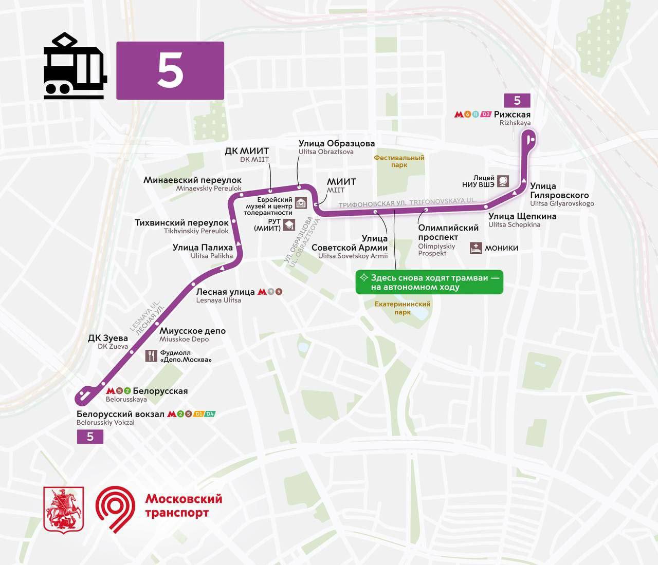 По Трифоновской улице вновь курсирует трамвай № 5, соединяя Белорусский вокзал и станцию метро «Рижская». Маршрут запущен в современном формате: более 4 км трамваи проходят на автономном ходу без контактной сети.Для этого полностью обновили пути, уложили новые рельсы, обустроили разворотное кольцо у «Рижской» и модернизировали стрелочные переводы. Благодаря бесшовной укладке с виброизоляцией движение стало тихим и плавным.