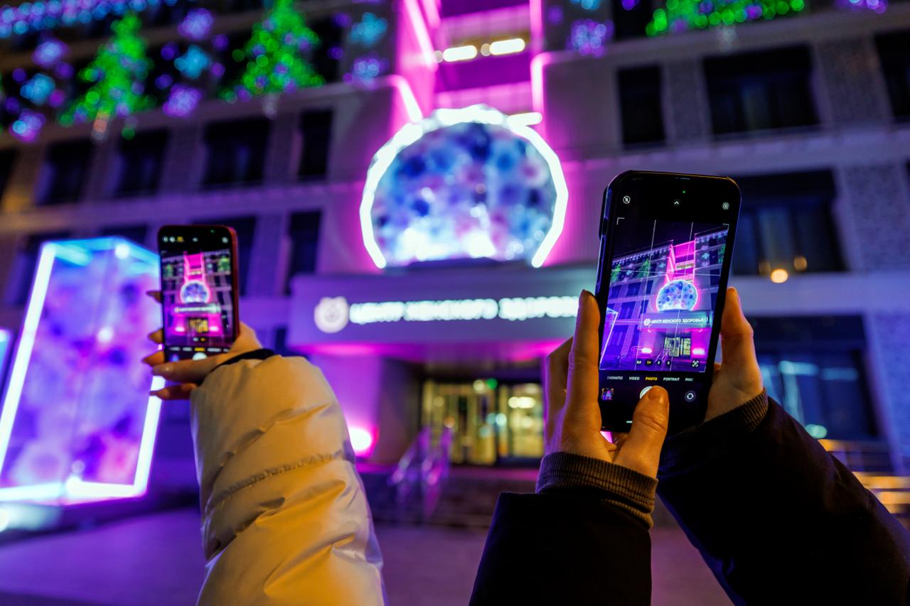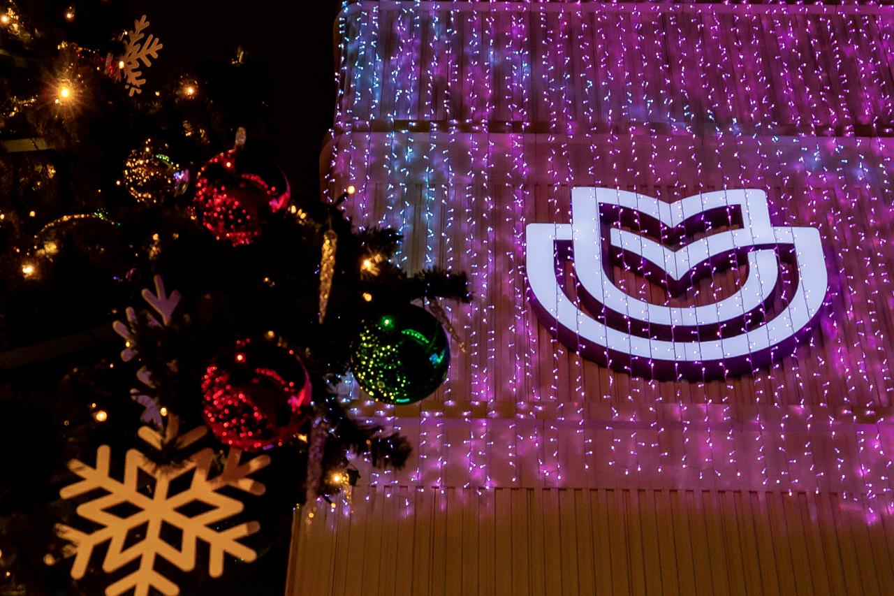 Территории у зданий превратились в настоящие арт-пространства, рядом с центрами появились масштабные световые инсталляции с подсветкой: внутри прозрачного льда застыли цветы, хрупкие и почти нереальные, как в зимнем саду под открытым небом.