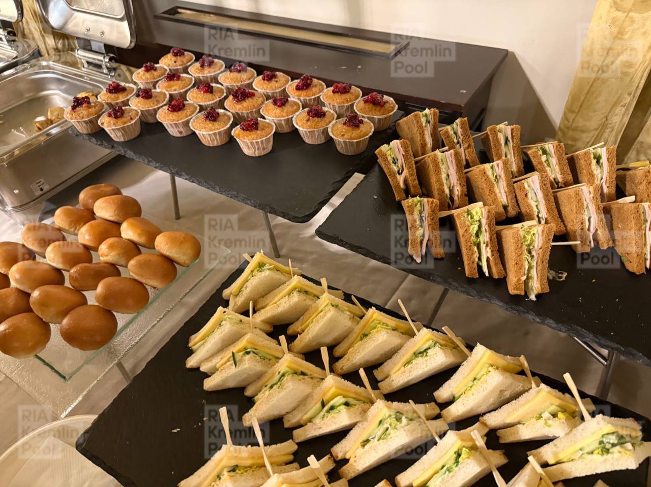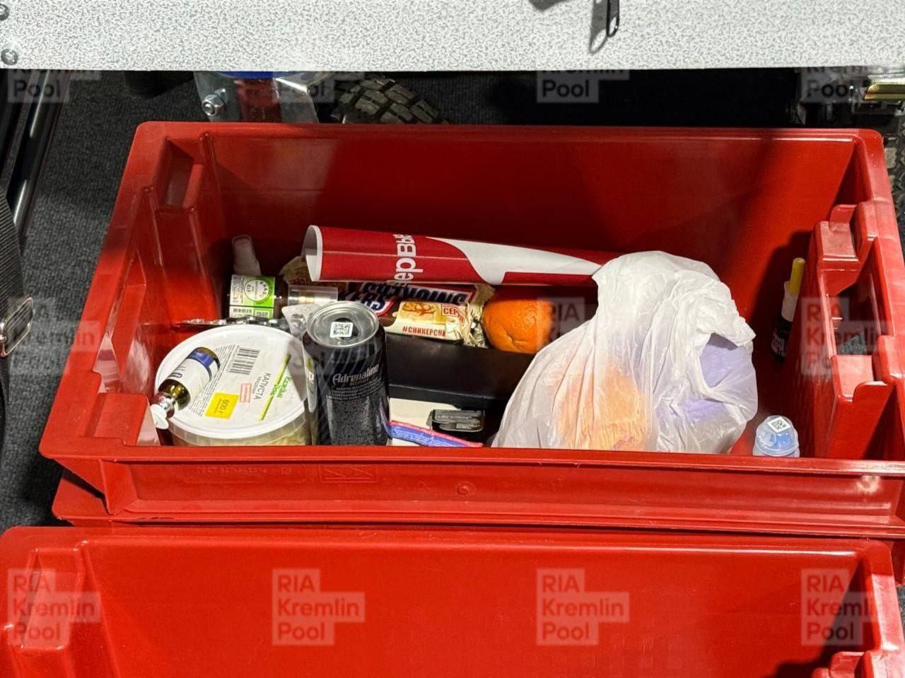 Энергетические напитки, шоколад, мандарины и даже квашеную капусту забрала у журналистов служба безопасности президента на входе в Гостиный двор.